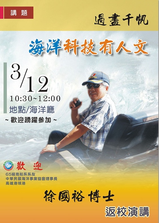 本會理事長 徐國裕博士應國立台灣海洋大學邀請,前往海洋大學作專題演講,對海洋科技的發展與人文的連結做了深入的闡述分析,希望能做為海洋大學學生對於追求專業知識與人生哲學方向的參考。